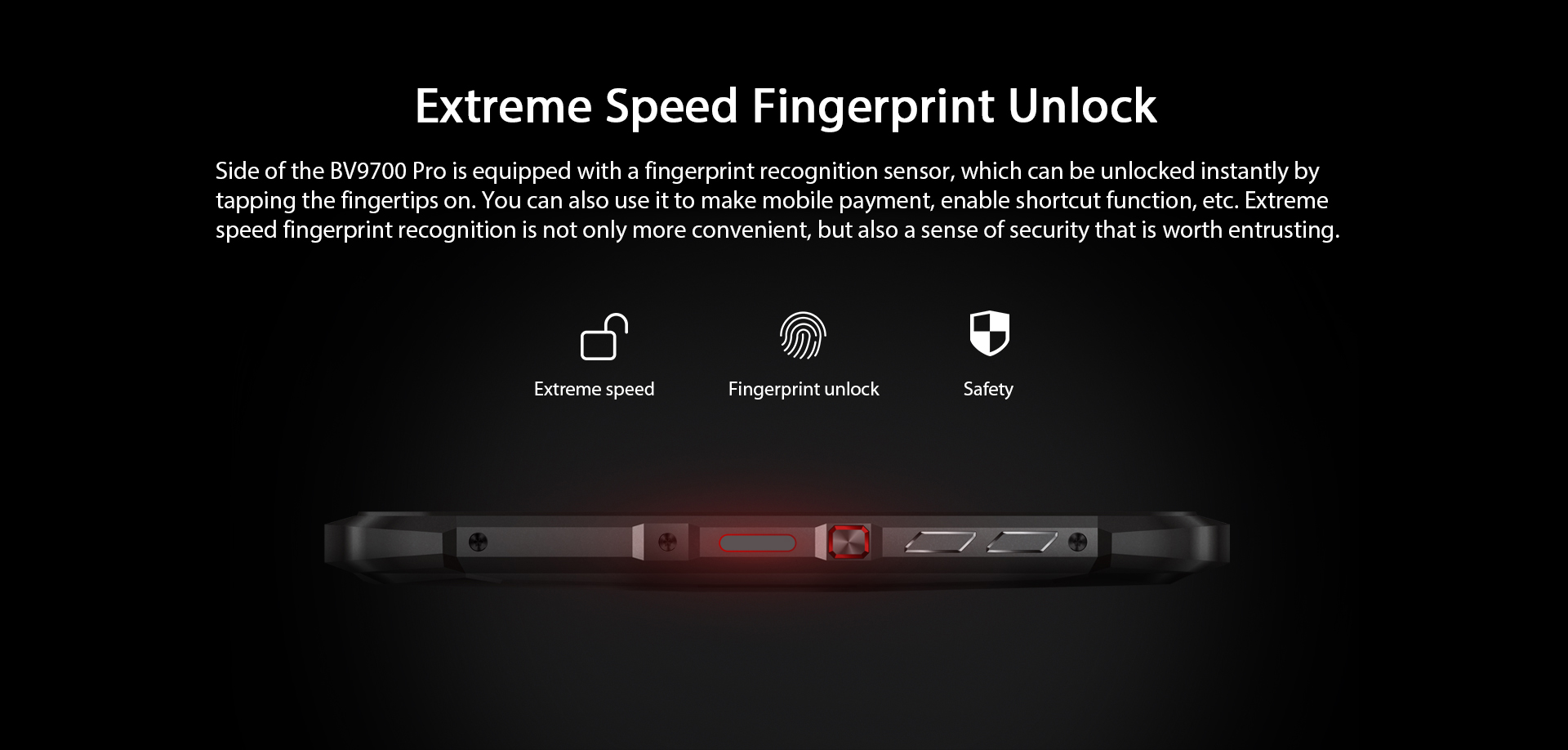 • Водоустойчивый сканер отпечатка пальца, позволяющий разблокировать телефон за 0,1 секунды даже при мокром пальце